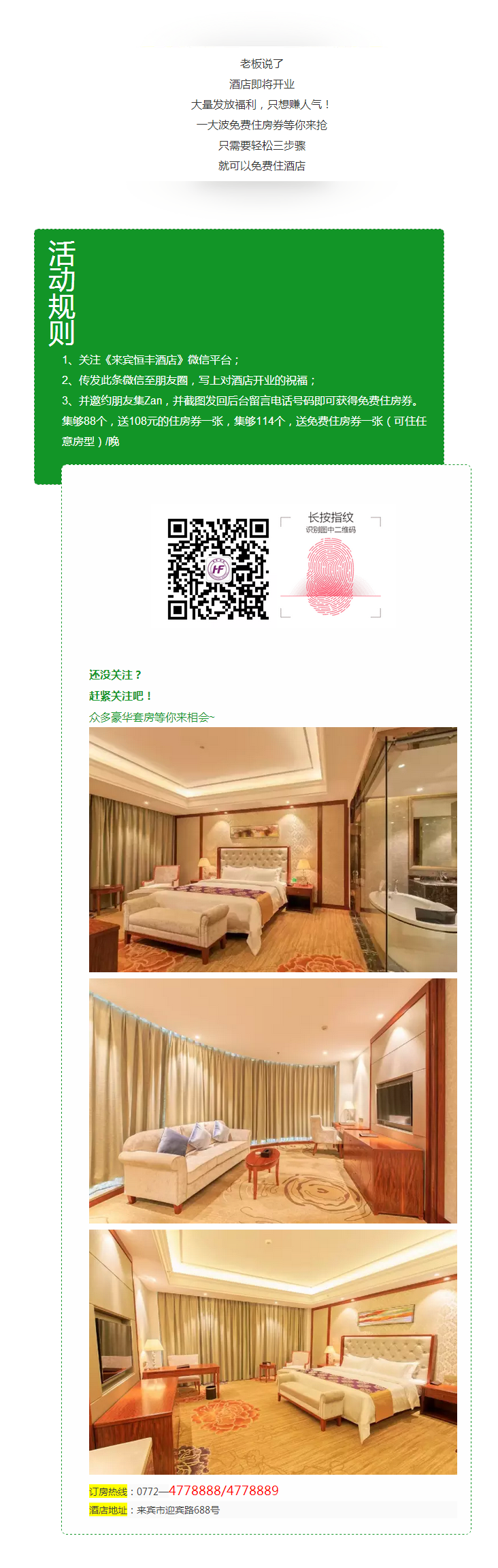 11月4日,來賓恒豐酒店盛大開業(yè),特價房98元,住就送!